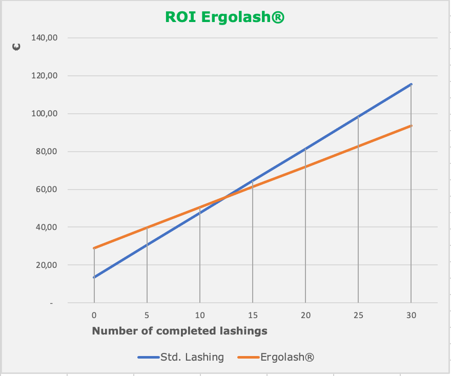 Herbereken uw kosten na 13 sjorringen (gemiddeld). We hebben berekend hoeveel sjorringen u nodig hebt om de ROI (return of investment) te bereiken.